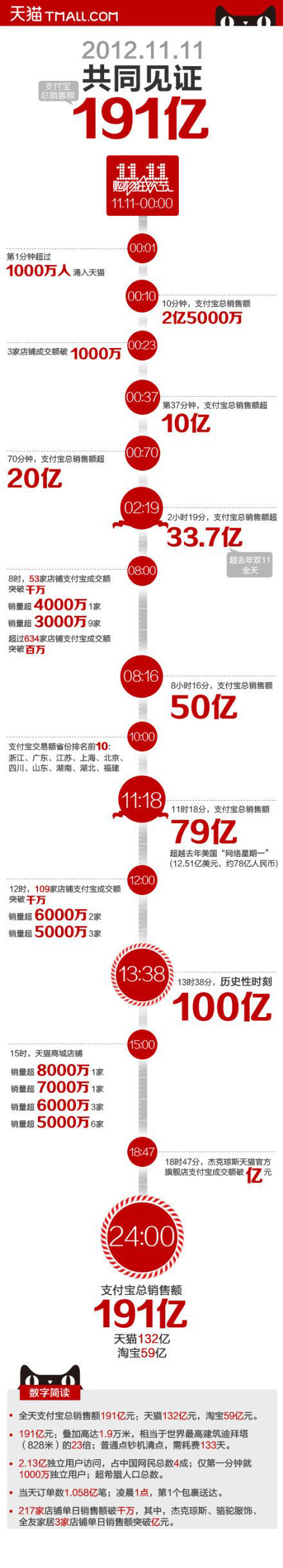 阿裡(lǐ)巴巴集團11月(yuè)12日(rì)淩晨确認,11.11購(↑gòu)物(wù)狂歡節天貓和(hé)淘寶↓¥≥的(de)支付寶總銷售額達到(dào)191億元←±,是(shì)去(qù)年(nián)的(de)三倍多(duō),≈&λσ其中僅天貓就(jiù)達成了(le)132億元,淘寶則完成了♦≠(le)59億元。如(rú)果将百元大(dà)鈔摞起來(≈¥ lái),191億元可(kě)高(gāo)達1.9萬米γ$€↑,相(xiàng)當于世界最高(gāo)建築迪拜塔(828米)的(de₹¶♣)23倍。如(rú)果用(yòng)常見(jiàn)的(de)點鈔機(jī)來(lái)清點♣∑♦,需要(yào)耗費(fèi)133天。